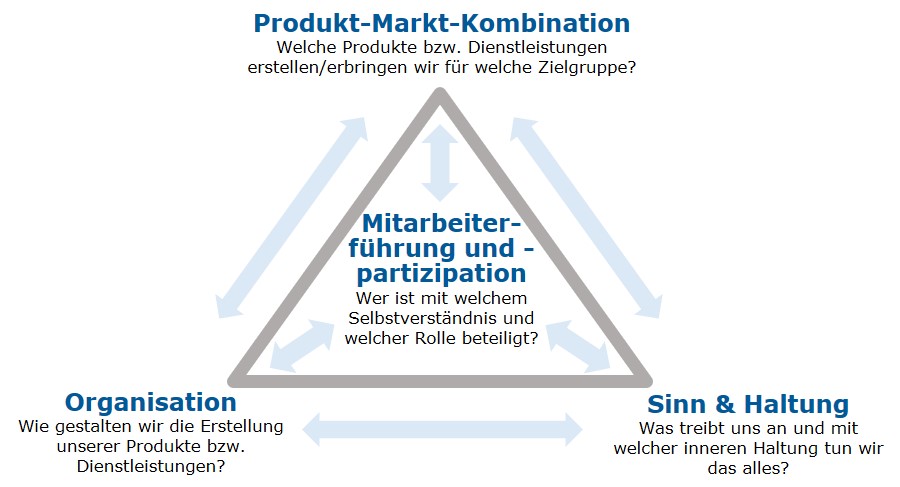 - Worum geht es? „Das Modell „Ganzheitliche Unternehmensentwicklung“ unterstützt das Navigieren von Unternehmen (als auch von Teams oder Einzelpersonen) in turbulenten Zeiten. Die vier Themenfelder beinhalten alle Aspekte, über die Klarheit bestehen sollte, wenn Sie ein Unternehmen gründen oder erfolgreich führen wollen. Von daher unterstützt das Modell im Sinne einer Checkliste dabei nichts zu übersehen. Neben der Vollständigkeit hilft das Modell ein in sich schlüssiges, stimmiges Geschäftsmodell zu entwickeln. Es bestehen direkte Abhängigkeiten zwischen den vier Themenfeldern, die für ein erfolgversprechendes Geschäftsmodell logisch und harmonisch zusammenspielen müssen. Änderungen an einer Stelle haben Auswirkungen auf die anderen drei Bereiche. Das Ausbalancieren der vier Themenfelder ist eine zentrale Herausforderung für Inhaber, Führungskräfte & Mitarbeiter und zentraler Gegenstand der Buchreiche Management meets You. Franz-Ferdinand Kress: „Ich bin zutiefst überzeugt, dass es relevante Grundprinzipien und -haltungen für eine erfolgreiche Unternehmensführung gibt und dass es möglich ist, diese übersichtlich und verständlich zu beschreiben. Ebenso brenne ich für die Idee von Produktivität und Menschlichkeit in Unternehmen – heute mehr denn je. Da ich kein Modell gefunden habe, dass auf anschauliche Weise beide Aspekte und insbesondere deren Wechselwirkung allgemeinverständlich veranschaulicht, habe ich Mitte der 2000-er Jahre das Modell „Ganzheitliche Unternehmensentwicklung“ entwickelt. In den ca. 15 Jahren bis heute wurde es weiter verfeinert, in zahlreichen Organisationsentwicklungsprojekten verwendet, von einem international agierenden High-Tech-Engineeringunternehmen mit 10.000 Mitarbeitern als Leitmodell in der Führungskräfteentwicklung etabliert, an der Dualen Hochschule gelehrt… – sprich es hat sich als praxistauglich erwiesen.“