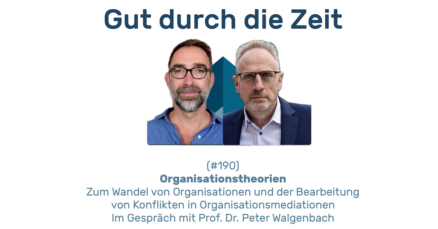 [28:45] Organisationen sind nur an Handlungen interessiert und nicht an den Individuen. Das ist das Pech der Individuen in der Organisation, dass die Organisation eigentlich nur ihre Handlungen will und alles andere irrelevant ist. Finde ich, ist ein prima Schlusswort. Herr Walgenbach, ich bedanke mich für das hochinteressante Gespräch. Danke, Herr Weigel. Hat mir Spaß gemacht. Gute Zeit für Sie. Guten Start ins neue Semester. Danke. Tschüss. Vielen Dank, dass du und ihr wieder mit dabei wart. Hier im Podcast Gut durch die Zeit, der Podcast rund um Mediation, Konfliktcoaching und Organisationsberatung. Wenn dir die Episode gefallen hat und der Inhalt generell zuspricht, dann abonniere doch diesen Podcast und hinterlasse ein Feedback oder eine Sternebewertung auf Apple Podcast oder Google Business. Das hilft auch Personen, die den Podcast noch nicht kennen, ihn aufzufinden und sich dann anzuhören. Bis zum nächsten Mal. Komm gut durch die Zeit. Ich bin Sascha Weigel, dein Host von INKOVEMA, dem Institut für Konflikt- und Verhandlungsmanagement in Leipzig und Partner für professionelle Mediations- und Coachingausbildungen.