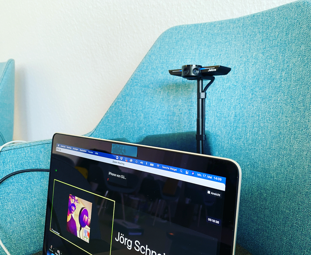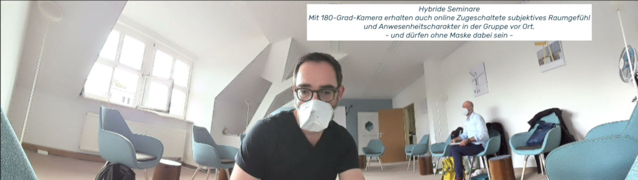 - Sofern Sie einmal nicht vor Ort teilnehmen können, schalten wir Sie mit unserer 180Grad-Kamera online hinzu.